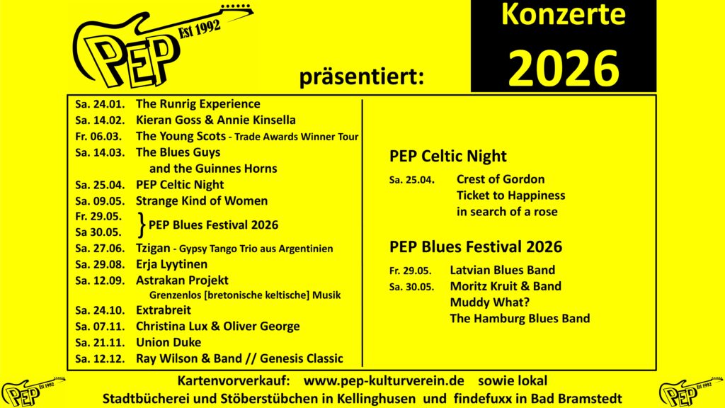 PEP Blues Festival 2026 – Freitag, 29.05.26