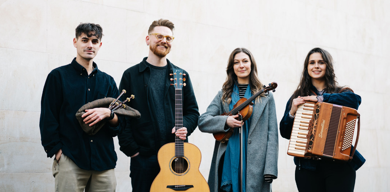 Die Young Scots 2026 – das sind Chloë Bryce, die mit ihrer berührenden Stimme und ihrem virtuosen Geigenspiel verzaubert; Calum McIlroy, der mit seinem Gesang und seiner Gitarre das Publikum auf eine emotionale Reise mitnimmt; Megan MacDonald, die mit ihren fesselnden Akkordeonklängen die Herzen der Zuhörer erobert; und Fionnlagh Mac A‘ Phiocar, der mit Dudelsack und Flöten für Gänsehautmomente sorgt und die Tradition lebendig werden lässt.